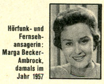Ich bin als Rundfunksprecherin tätig und war von 1954 bis 1961 Fernsehansagerin des SFB. Der Versuch,